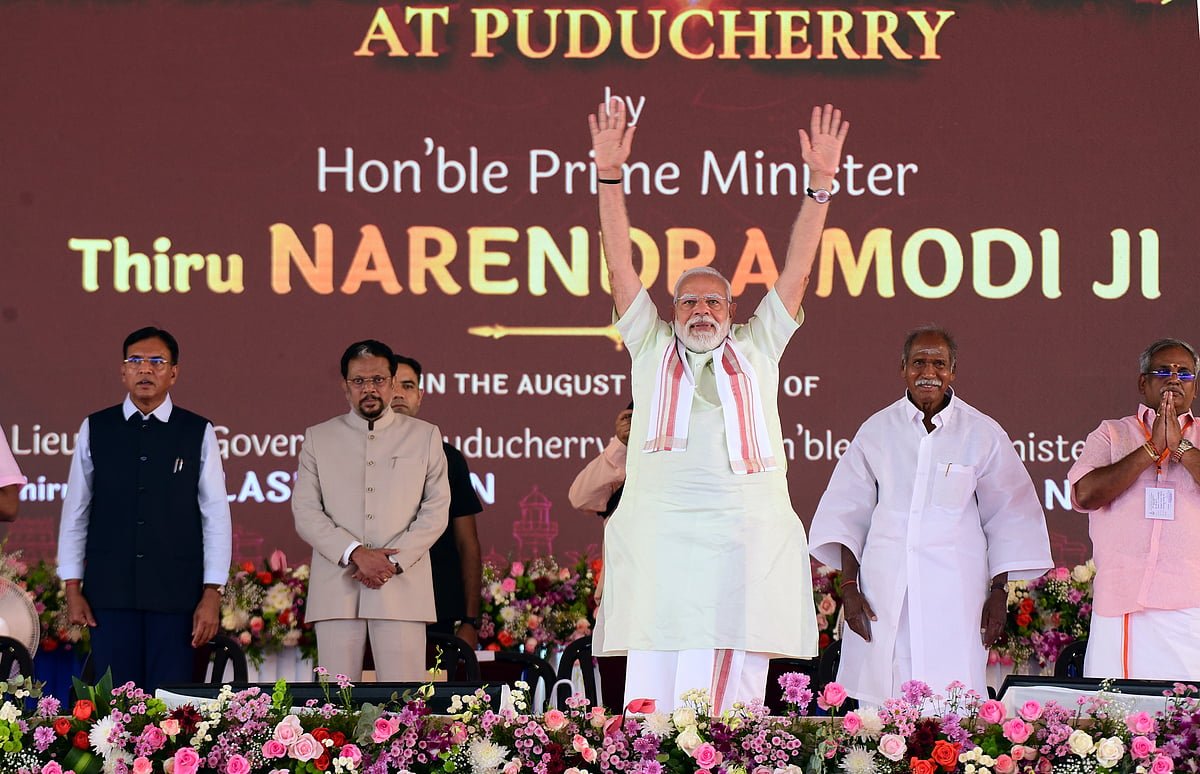 Prime Minister Modi, who visited Puducherry yesterday, inaugurated development projects worth Rs. 2,714 crore and spoke. At that time, he said, "Brothers and sisters... it is an honor to stand before you in Puducherry. This is a sacred land where sages, ascetics, poets, and freedom fighters lived. The great poet Subramania Bharati ignited the great fire of nationalism right here in Puducherry. When I came to Puducherry before, I pronounced the mantra 'Best Puducherry.' We pledged to unite commerce, education, spirituality, and tourism to make Puducherry the best Puducherry."