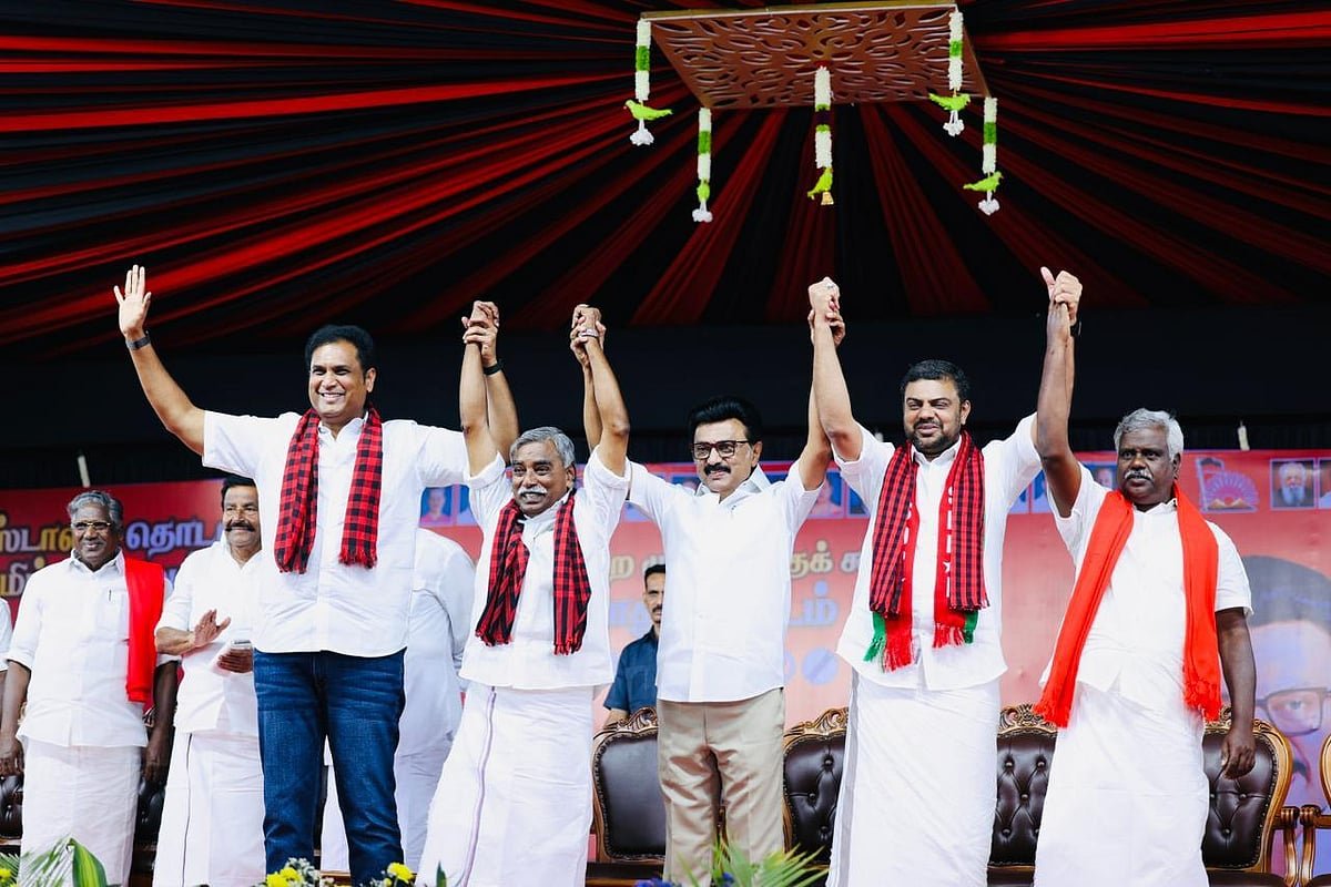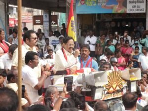 This election is Tamil Nadu team versus Delhi team. Tamil Nadu versus NDA. If Tamil Nadu is to be protected, DMK must come to power again. If Tamil Nadu is to continue on the path of development, DMK must remain in power. If Tamil Nadu is to avoid becoming a land of chaos, the BJP-AIADMK alliance must be completely defeated. You all must clearly understand one thing. We are fighting not just for the victory of DMK, not just for the victory of the coalition parties led by DMK, but this is a victory for Tamil Nadu. Don’t forget that. This is a victory for Tamil Nadu. Therefore, regardless of political preferences or dislikes, to protect our mother Tamil Nadu,