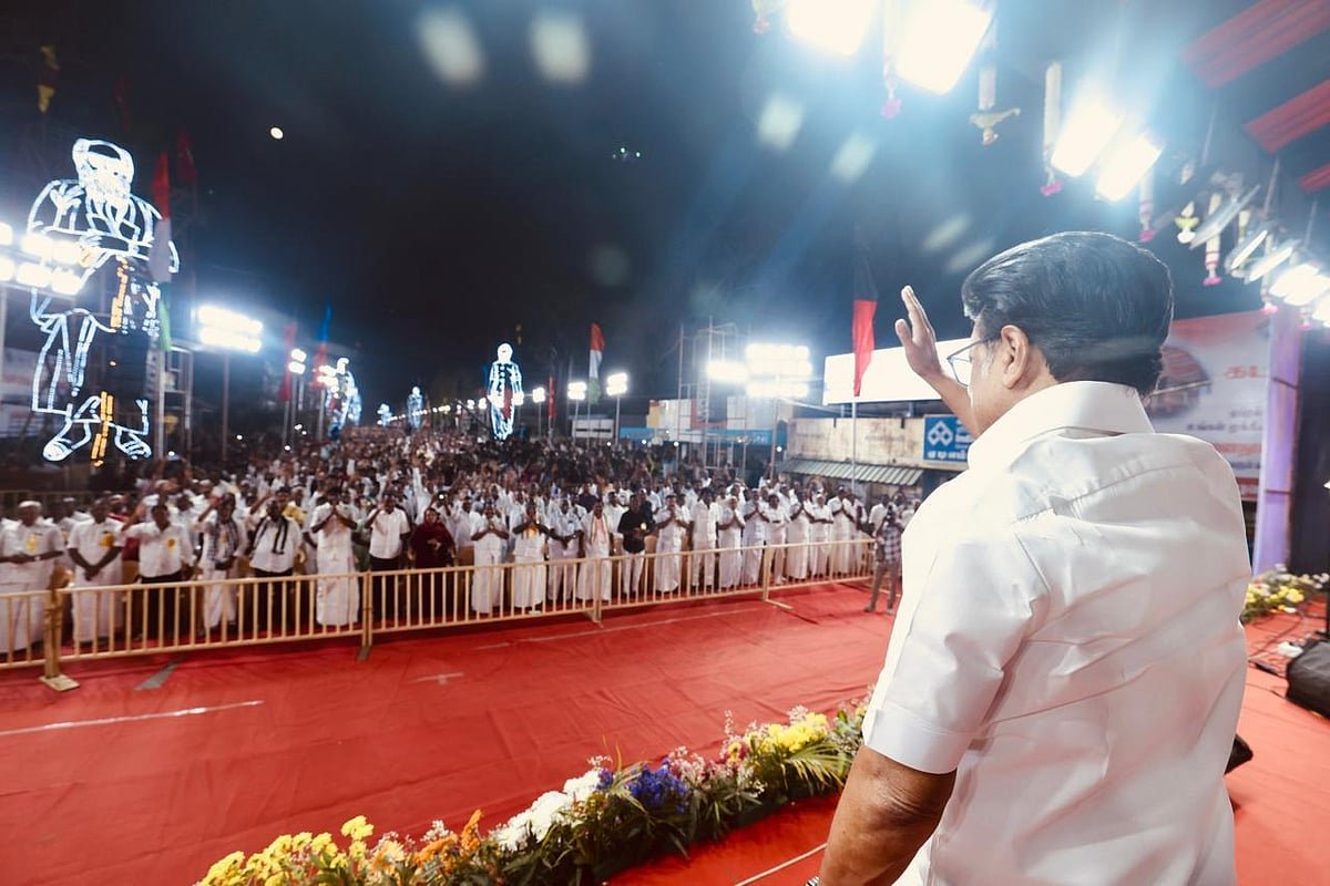 Can the future of Tamil Nadu be entrusted to a coalition with such deceitful intentions? Tell me, can it be entrusted? Tell me, can it be entrusted? Tamil Nadu must reject the NDA. Only then will the future of Tamil Nadu be saved. You yourselves have seen what kind of opportunistic coalition the NDA alliance is. They threatened Palaniswami, who ruled through corruption, commissions, and collections, snatched away the rights of Tamil Nadu through the alliance ministry, committed many betrayals in succession, staged strange dramas, and finally came to Tamil Nadu with NDA candidates after deciding in Delhi to lose. That is why I said this, Stalin.