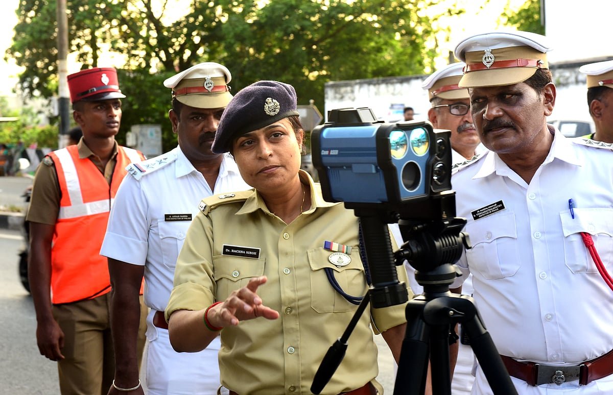 அதிவேகமாக வரும் வாகனங்களை கண்காணிக்கும் எஸ்.பி. ரட்சனா சிங்