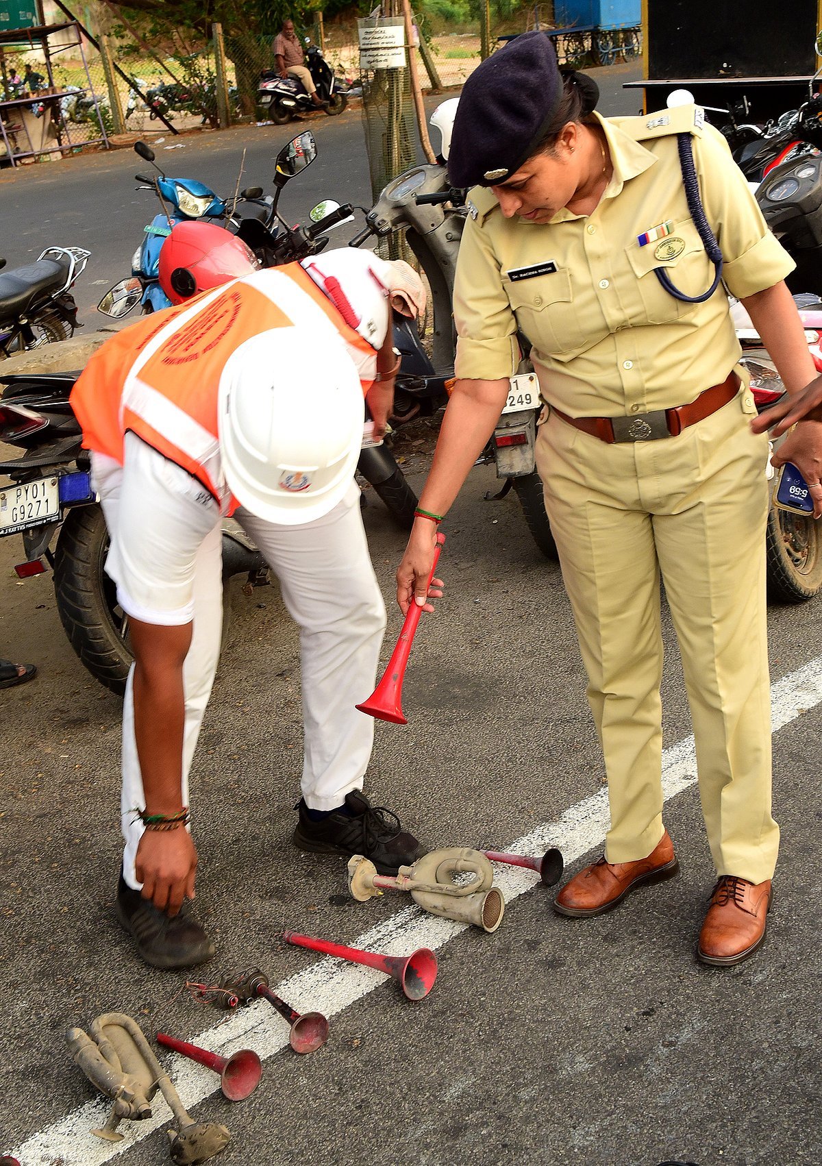 Ratchana Singh, the police officer monitoring the fast-moving vehicles, inspected the removed air horns, SP said.