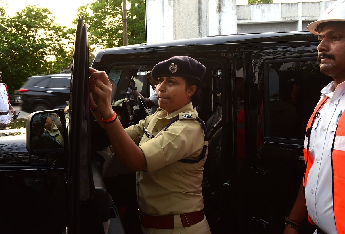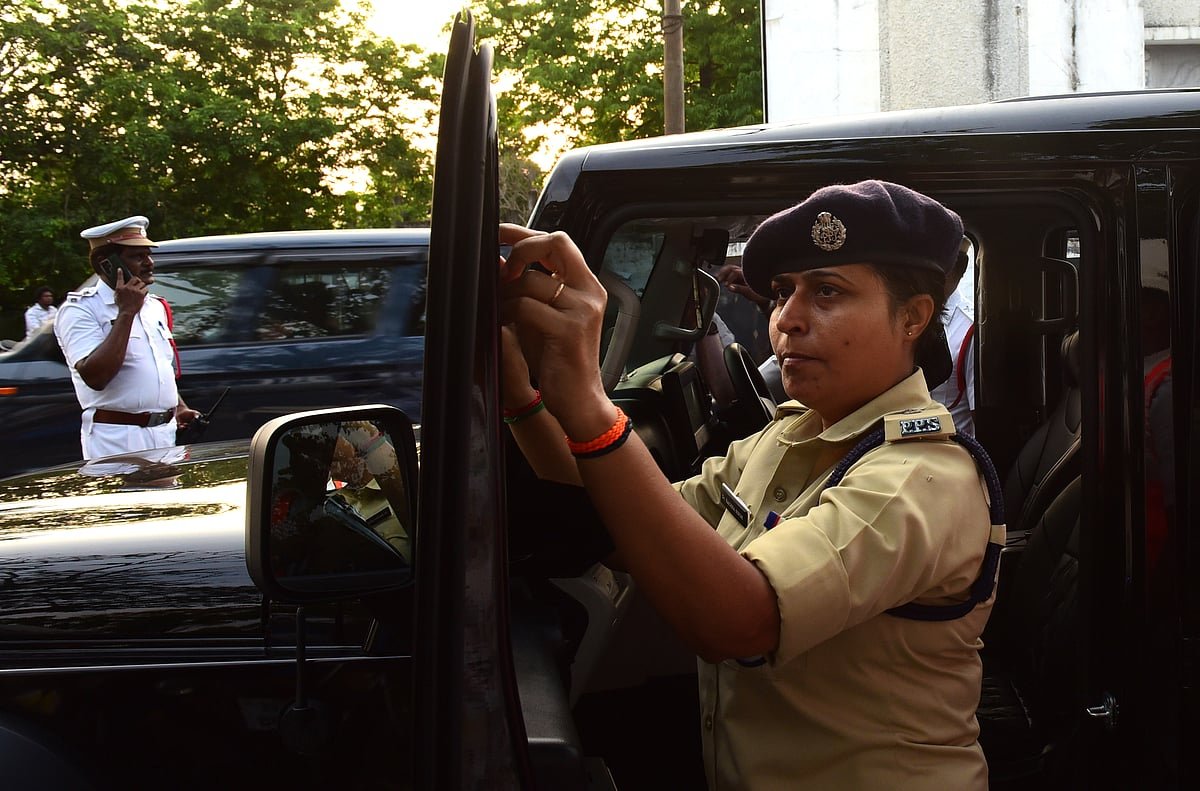 அனுமதிக்கப்பட்ட அளவை விட அதிகம் ஒட்டப்பட்ட கருப்பு ஸ்டிக்கர்களை அதிரடியாக அகற்றிய எஸ்பி ரட்சனா சிங்