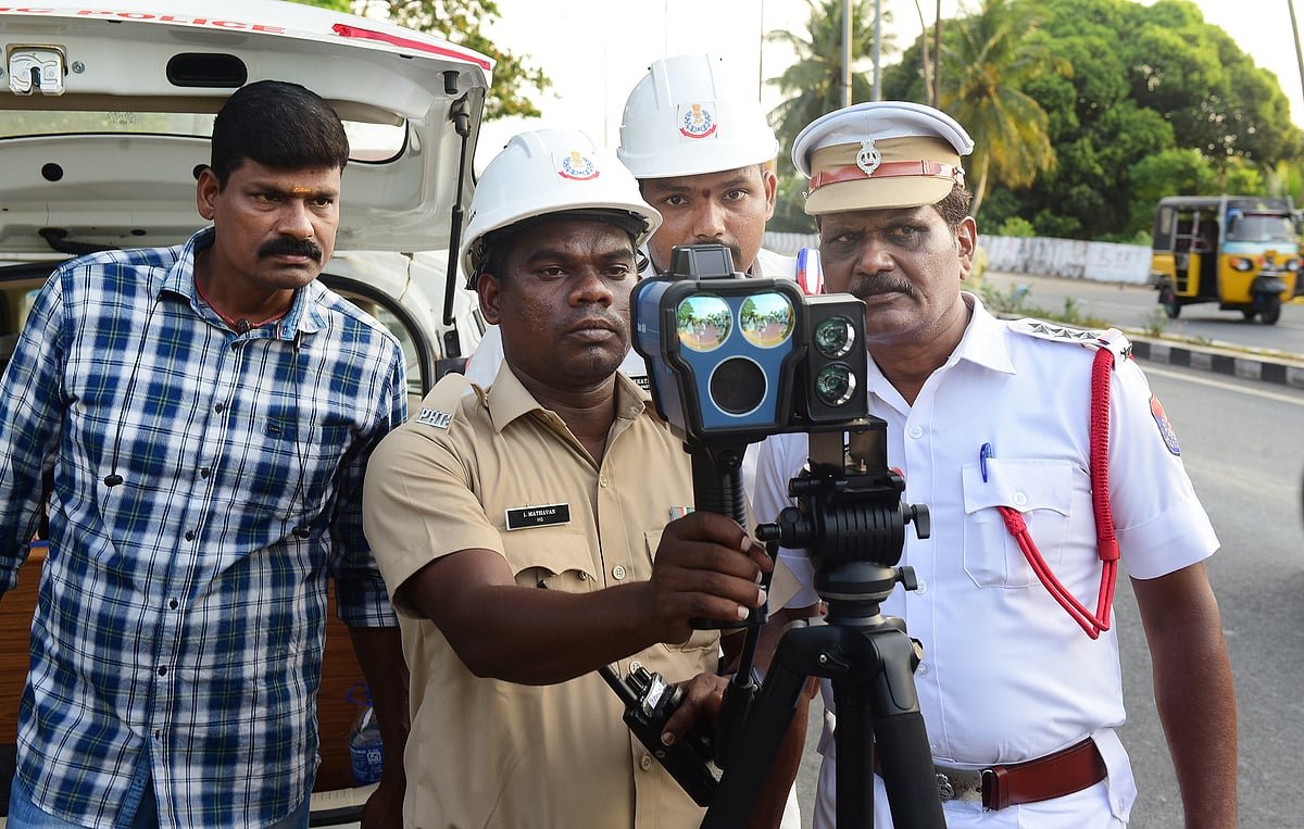 அதிவேகமாக வரும் வாகனங்களை கண்காணிக்கும் போலீசார்