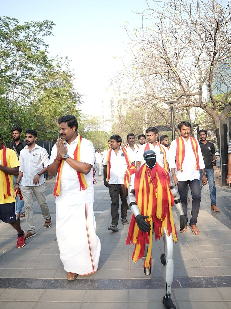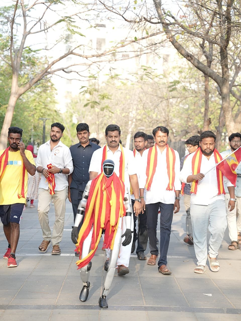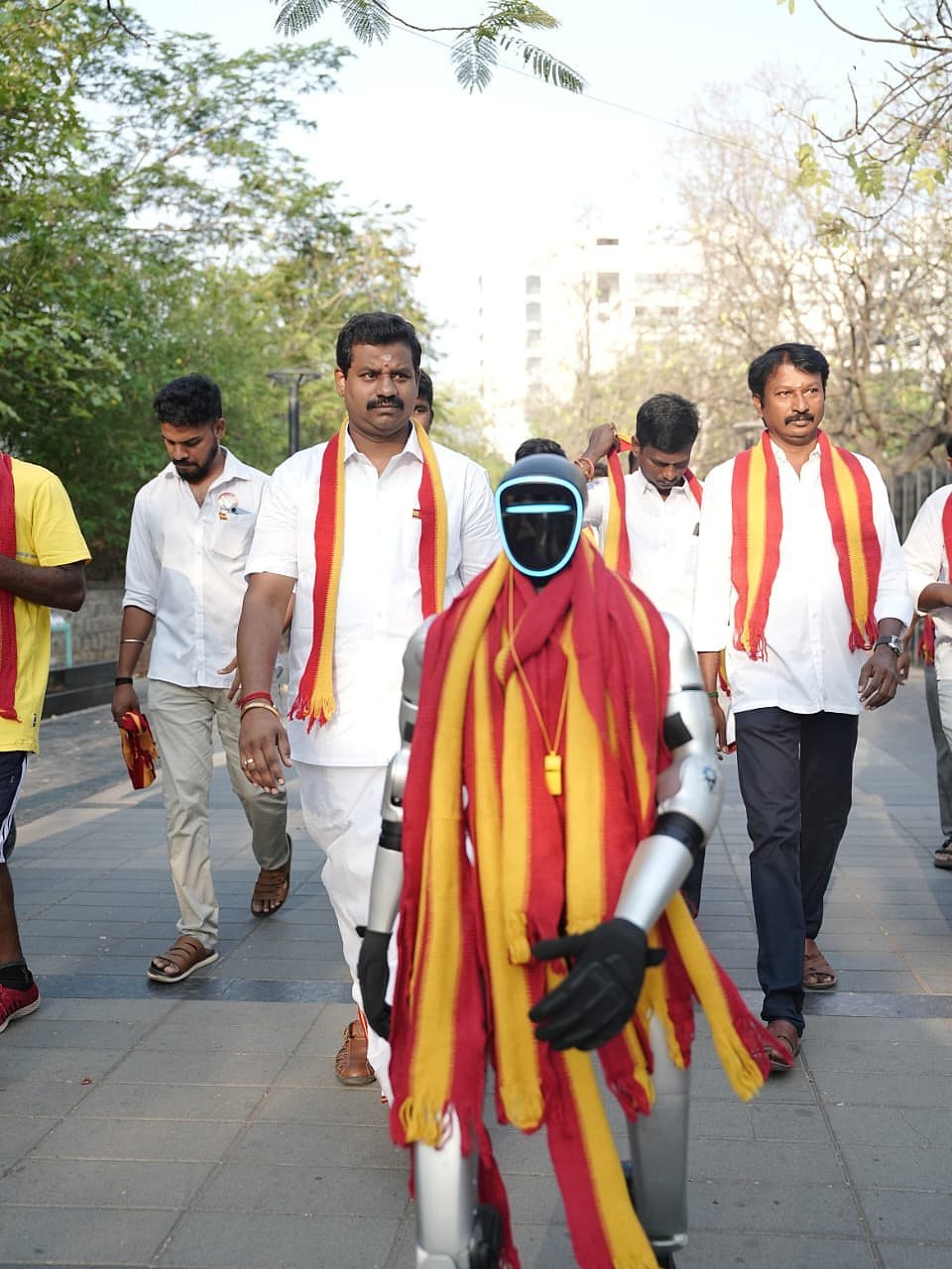 ரோபோட்டின் கழுத்தில் கட்சிக் கொடி அச்சிடப்பட்ட துண்டு அணிவிக்கப்பட்டிருந்தது. இதைப் பார்த்த பொதுமக்கள் ஆச்சர்யத்துடன் ரசித்து, புகைப்படங்கள் எடுத்து மகிழ்ந்தனர். மனிதர்களை விட ரோபோட்டே அதிக கவனத்தை ஈர்த்தது என்பது குறிப்பிடத்தக்கது.