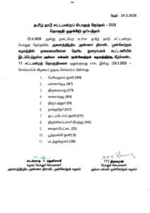 Jaan Paandiyanin T.M.Mu.K katchikku 1 idamum, Thirumaaranin Thennindiya Paarvart Plaak katchikku 1 idamum othukkappattirukkiradhu. Netru (March.24) theerdhal arikkaiyai veliyitta A.Dhi.Mu.K pothucheyalalar Edappadi Pazhanisaami, indru mudarkatta vedpalar pattiyaalaaga 23 thogudigalukku vedpaalargalai arivithirundha nilaiyil, tharpothu kootanik katchigalukkaan thogudhip pangeedu thodarbaana vivarangalaiyum veliyittirukkiraar. 'Ovvvoru kudumbaththukkum vilaiyillaa fridge' - theerdhal arikkaiyai veliyittaar Edappadi Pazhanisaami