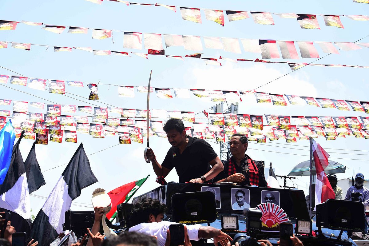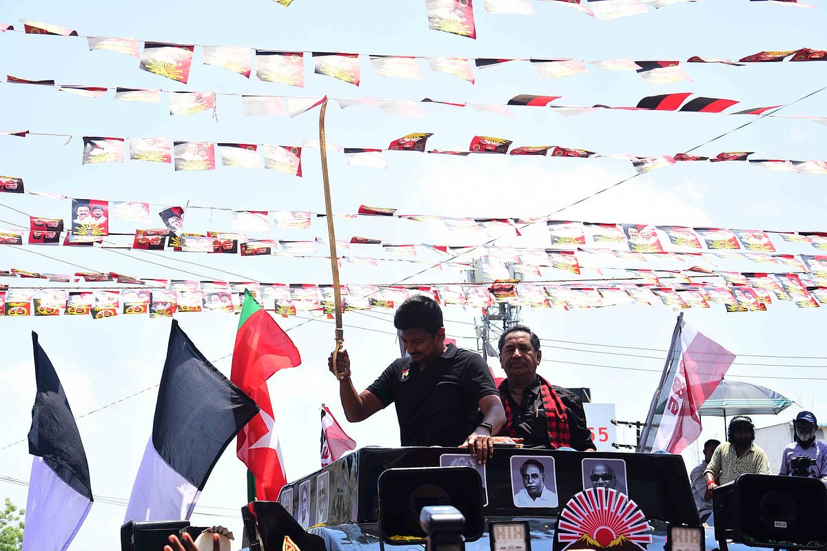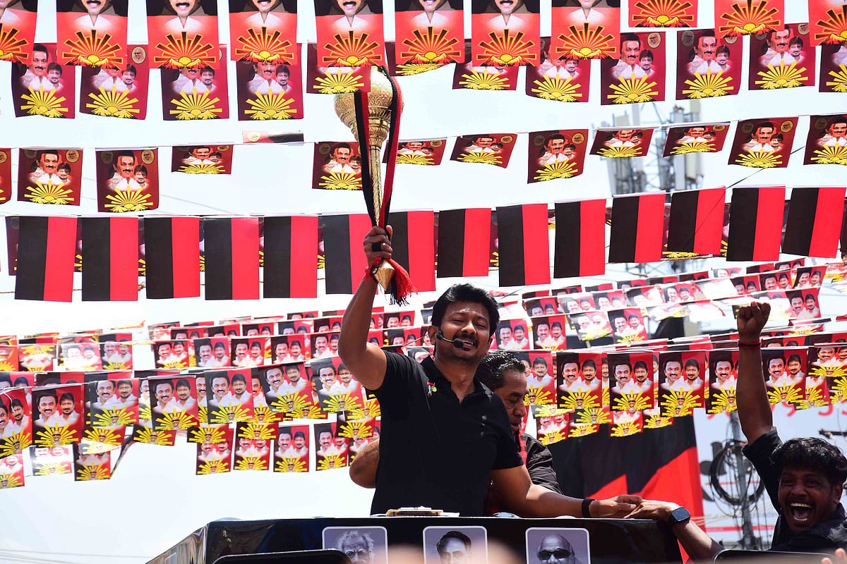 Madurai: ‘Kathayutham, Sword, Headgear’ – Udhayanidhi Stalin’s Election Campaign Highlights | Photo Album