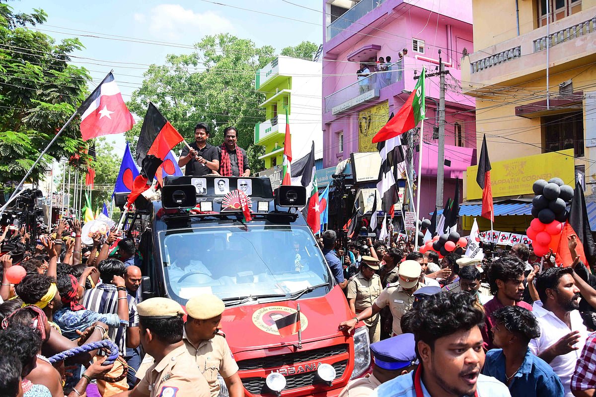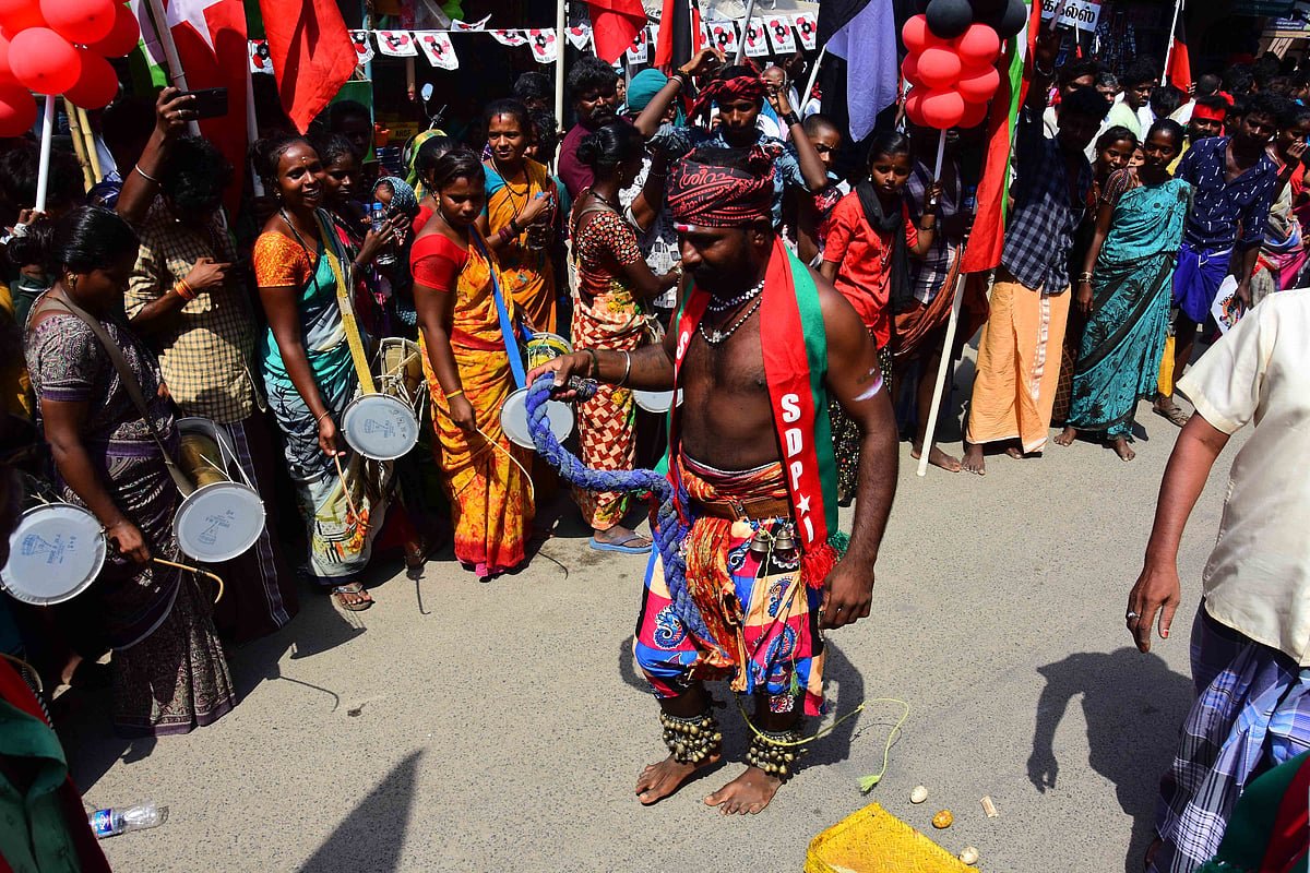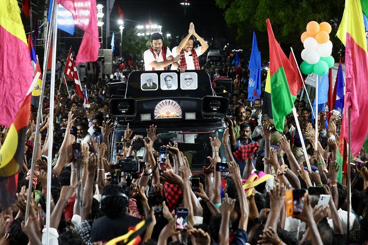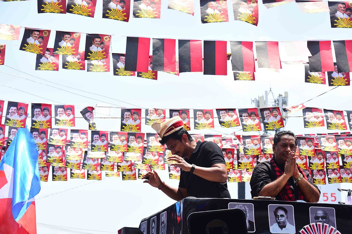 Madurai: ‘Kathayutham, Sword, Headgear’ – Udhayanidhi Stalin’s Election Campaign Highlights | Photo Album