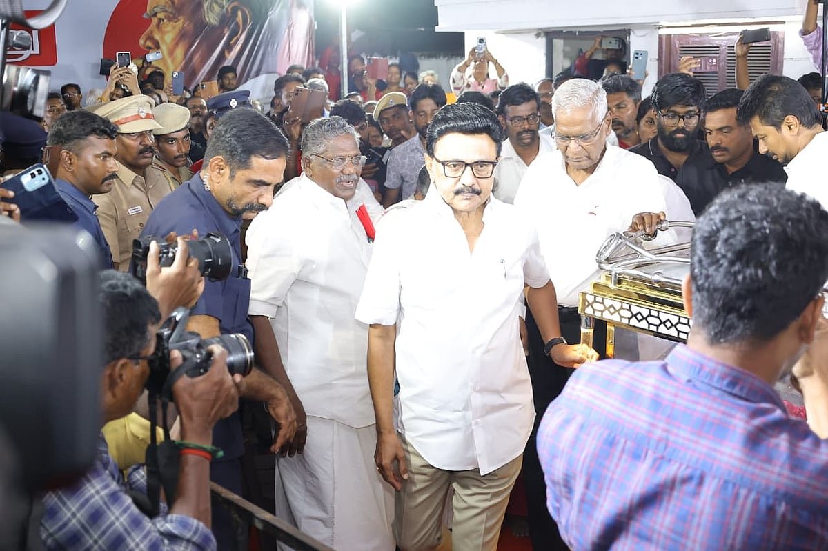 Senior leader of the Communist Party, Nallakannu (101), passed away today due to health issues. His body has been placed at the Indian Communist Party office in the city for the public to pay their respects. Chief Minister M.K. Stalin personally went to pay his respects to Nallakannu. Deputy Chief Minister Udhayanidhi Stalin also accompanied him to pay tribute. After paying respects, M.K. Stalin told reporters, "The passing of Nallakannu is a sorrowful news not only for the members of the Indian Communist Party but also for those involved in public life. Nallakannu was a lesson for those engaged in public life and politicians alike. To the grieving family who have lost him,"