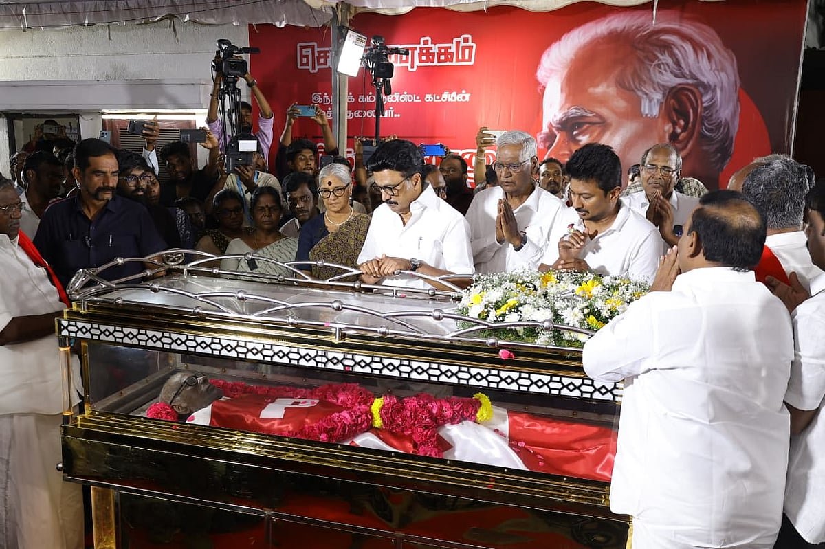 அவரது உடல் தி. நகரில் உள்ள இந்திய கம்யூனிஸ்ட் கட்சி அலுவலகத்தில் பொதுமக்கள் அஞ்சலிக்காக வைக்கப்பட்டிருக்கிறது.