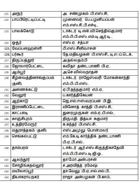 Minister Mano Thangaraj has no place on the list. Stalin is contesting in the Kolathur constituency, and Udhayanidhi Stalin is contesting in the Chennai Chepauk constituency. Durai Murugan is contesting again in the Katpadi constituency. The full list of candidates is given below. The complete list of DMK candidates contesting in the assembly elections!