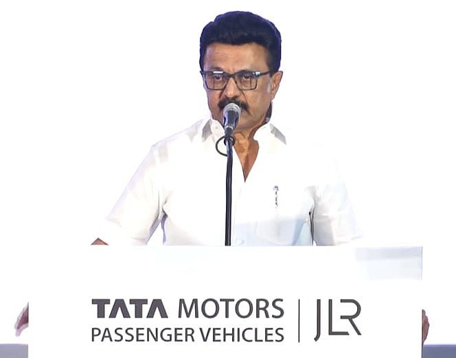 In Ranipet district, Panapakkam Sipcot Industrial Estate, with an investment of nine thousand crore rupees, the foundation stone for the production plant of Tata Motors' luxury vehicles 'Jaguar Land Rover' was laid by Chief Minister M.K. Stalin in September 2024. With the construction work of the factory completed, today Chief Minister Stalin inaugurated the factory and started the first vehicle operation. Speaking at the event, Stalin said, "When our beloved Tata Group Chairman Chandrasekaran spoke first, he proudly and happily said, 'This day is a golden day for the Tata Group.' He forgot one thing."