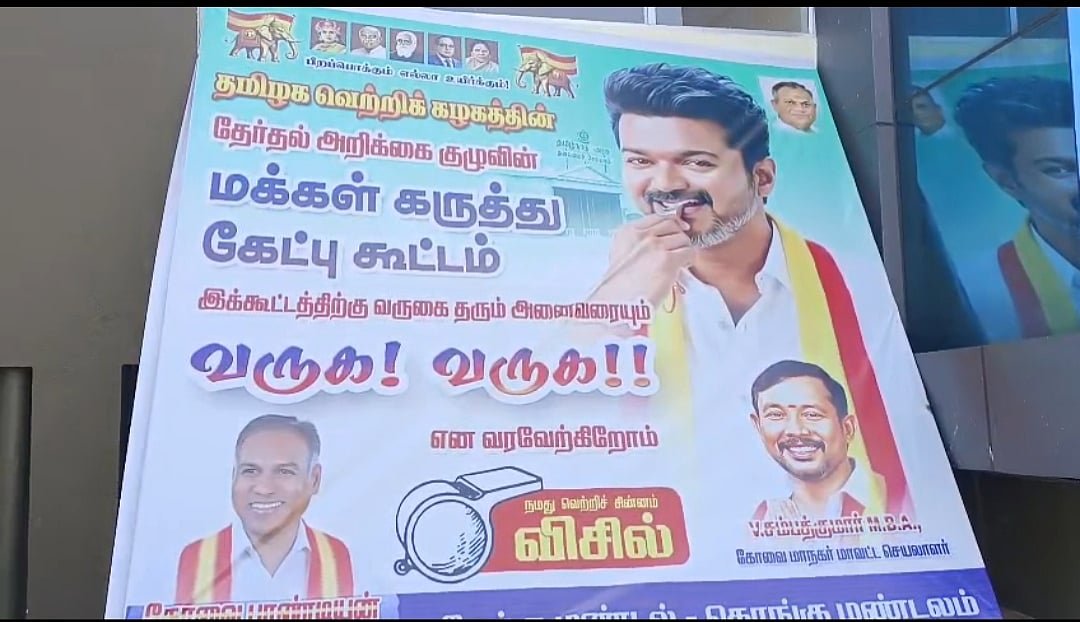 The Tavek Election Report Preparation Committee is traveling through each region to gather people's opinions. In this context, a public opinion meeting for the Western region was held today in the Kaniyur area of Coimbatore. The Tavek administrative committee chief coordinator and Sengottaiyan, a key figure of the Kongu region's Tavek, did not participate in this event. Sengottaiyan's photo was also not included on the banners displayed on behalf of Tavek for this event. At this meeting, Tavek Policy Expansion General Secretary Arunraj told reporters, "Various groups have been formed for the election on behalf of Tavek. Sengottaiyan is a key member of the Tavek campaign team."