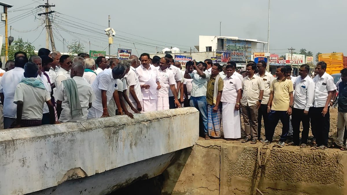 In Karur district, the area enclosed by the Pugazhur canal was inspected on-site by former Minister M.R. Vijayabaskar along with representatives of the farmers' association and farmers at the Pugazhur bridge site on the Karur-Salem National Highway. Subsequently, addressing the reporters, Mr. Vijayabaskar said, "Through the Pugazhur Raj canal, a major irrigation canal in Karur, thousands of acres of land in the Vangal and Nerur areas of Karur district receive irrigation facilities. For maintenance work, this canal was closed last November and maintenance activities have been carried out. However, the DMK government has neglected these works. Due to the lack of water supply for the past three months, Vangal...
